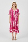 Mavi Batik Desenli V Yaka Eteği Volanlı Oversize Elbise