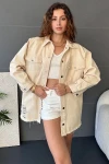 Mavi Çift Cepli Yırtık Detaylı Oversize Gömlek Ceket BCDF-245414