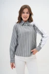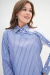 Mavi Özel Tasarım Çizgili Poplin Dokuma Gömlek