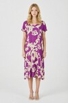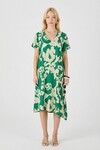 Mercan Derin V Yaka Yırtmaçlı Desenli Midi Boy Elbise