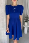 Saks Prenses Kol Eteği Volanlı Atlas Kumaş Kloş Elbise BCDF-252199