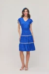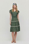 Saks V Yaka Nervürlü Çiçek Desenli Yazlık Viscon Elbise