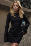 Bisiklet Yaka Flare Kol Sırt Dekolteli Simli Astarlı Mini Elbise