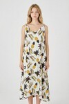 Siyah Askılı Boncuk Detaylı Çift Cepli Desenli Salaş Elbise