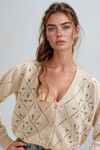 %100 Akrilik;Ürün Boyu:50 Cm Kol Boyu:55 Cm En Boyu:50 Cm;Düğmeli Modeli Ve Relax Fit Kalıplı Rahat Kullanımı İle Yüksek Bel Ve Mom Fit Jean Pantolonlarınızla Kolayca Kombinleyebileceğiniz, İçine Giydiğiniz Çıtçıtlı Body, Gömlek Ve Boğazlı Yaka Kazaklarla Mükemmel Bir Uyum Yakalayabileceğiniz, Basic Kombinlerinizde Sade Tercih Ederek Stil Sahibi Olabileceğiniz Baklava Desenli Çiçek Nakışlı Triko Hırka 'Nde Sizleri Bekliyor!!;Boy:1.70 Cm Göğüs:90 Cm Bel:60 Cm Kalça:90 Cm.