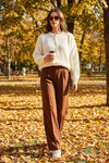 Beli Lastikli Düğme Kapamalı Çift Cepli Pantolon