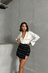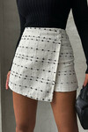 Siyah-Beyaz 2 Düğmeli Tüvit Kumaş Şort Etek