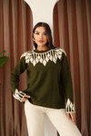 Siyah Bisiklet Yaka Desenli Triko Kazak