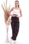 Siyah Çiçek Desenli Beli Lastikli Bol Paça Pantolon