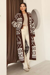 Siyah Desenli Saçaklı Uzun Boy Triko Hırka