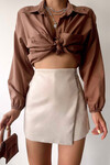 Fermuar Detaylı Süet Şort Etek