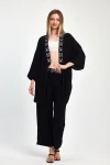 Siyah Fuşya Nakış İşlemeli Ceket Ve Pantolon Dokuma Viscon Alt Üst Takım