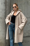 Siyah Kapüşonlu Çift Cepli Oversize Buklet Ceket Kaban
