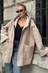 Siyah Kapüşonlu Çift Cepli Oversize Buklet Ceket Kaban