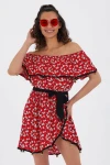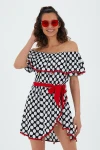 Siyah Madonna Yaka Desenli Volanlı Dokuma Elbise