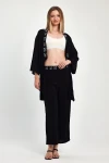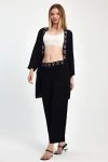 Siyah Mavi Nakış İşlemeli Ceket Ve Pantolon Dokuma Viscon Alt Üst Takım