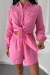 Siyah Müslin Keten Şortlu Alt Üst Takım