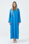 Siyah Nakış İşlemeli Maxi Boy Örme Viscon Elbise