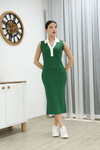 Siyah Polo Yaka Düğmeli Kolsuz Triko Elbise