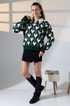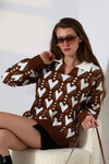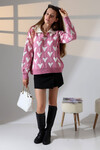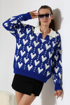 Siyah Polo Yaka Kalp Desenli Triko Kazak