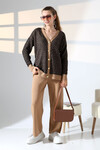 Siyah V Yaka Düğmeli Hırka Ve Pantolon Alt Üst Triko Takım
