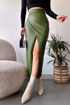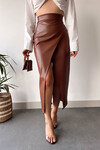 Siyah Yüksek Bel Kruvaze Kesim Suni Deri Etek