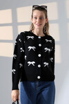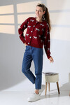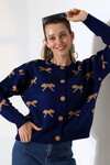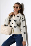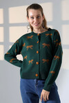 Tarçın Kahve Fiyonk Desenli Düğmeli Triko Hırka