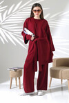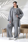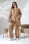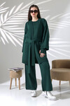 Taş Bisiklet Yaka Bluz, Hırka Ve Pantolon 3 Lü Triko Takım