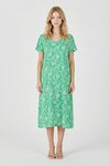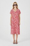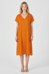 Kadın Turuncu Beyaz Derin V Yaka Kısa Kollu Çizgi Desenli Midi Boy Elbise BCVL-254004