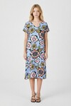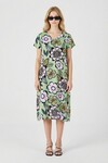 Turuncu Derin V Yaka Çiçek Desenli Midi Boy Elbise