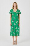 Turuncu Desenli Derin V Yaka Midi Boy Elbise