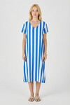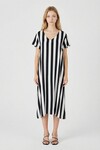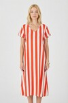 Turuncu V Yaka Kısa Kollu Rahat Kesim Elbise