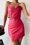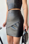 Yeşil Asimetrik Kesim Suni Deri Etek