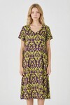 Kadın Yeşil Mavi Desenli V Yaka Midi Boy Elbise BCVL-254014