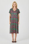 Yeşil Mavi Desenli V Yaka Midi Boy Elbise