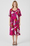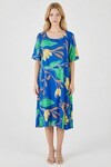 Yeşil Yaprak Desenli U Yaka Kısa Kollu Midi Boy Elbise
