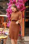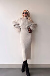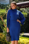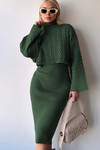 Zümrüt Yeşili Boğazlı Örgü Motifli Crop Kazak Ve Triko Elbise Takım